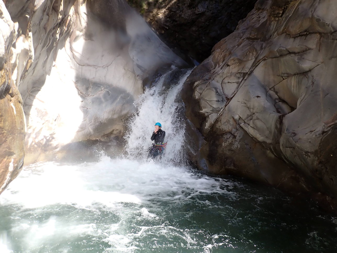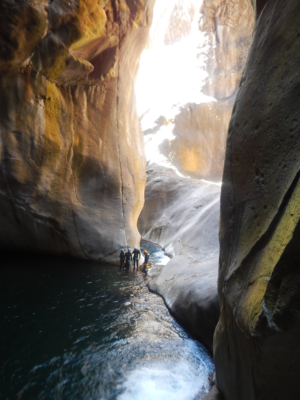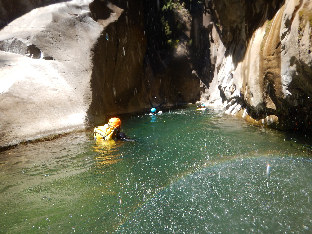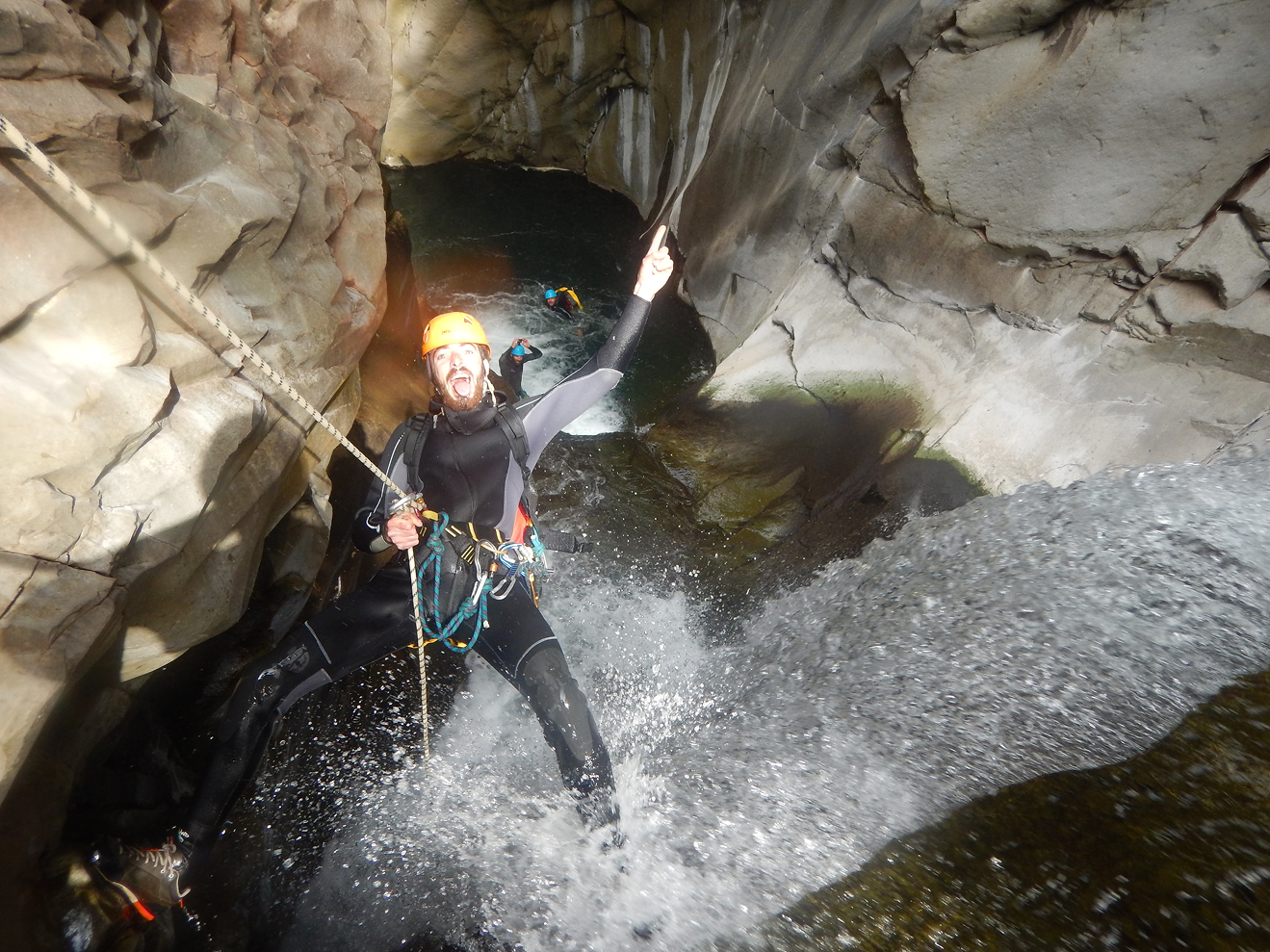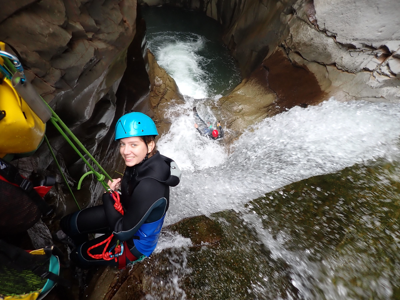 • Équipement complet : combinaison néoprène, casque, baudrier, sac canyon + bidon étanche